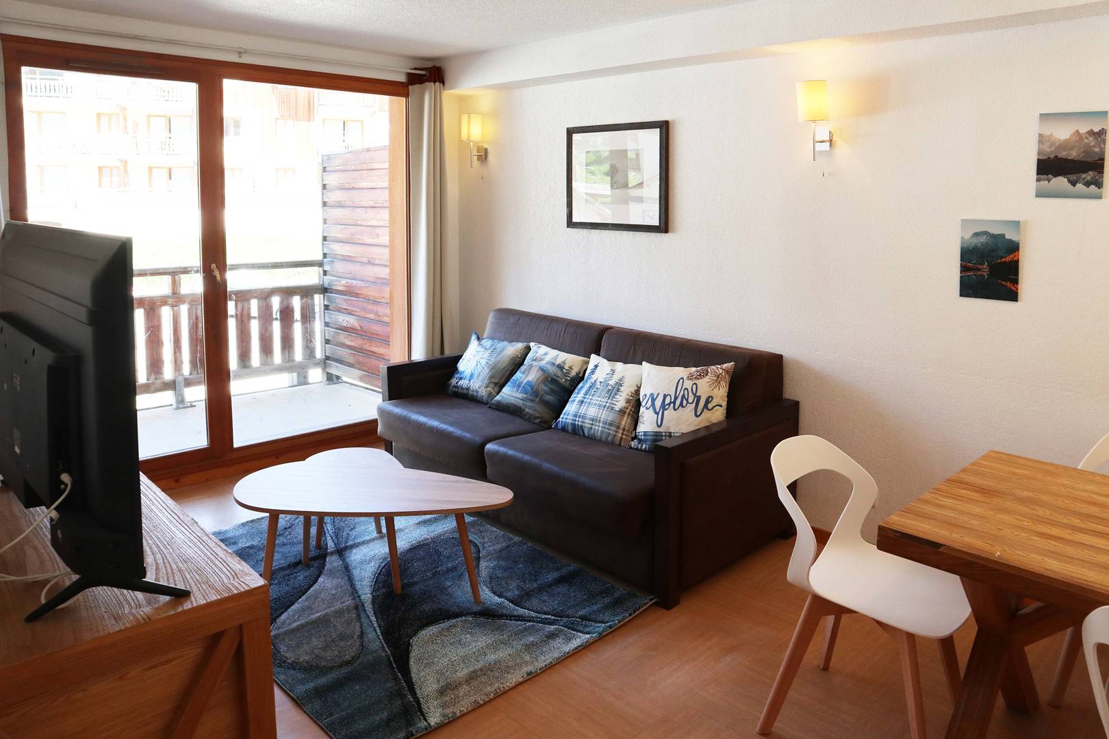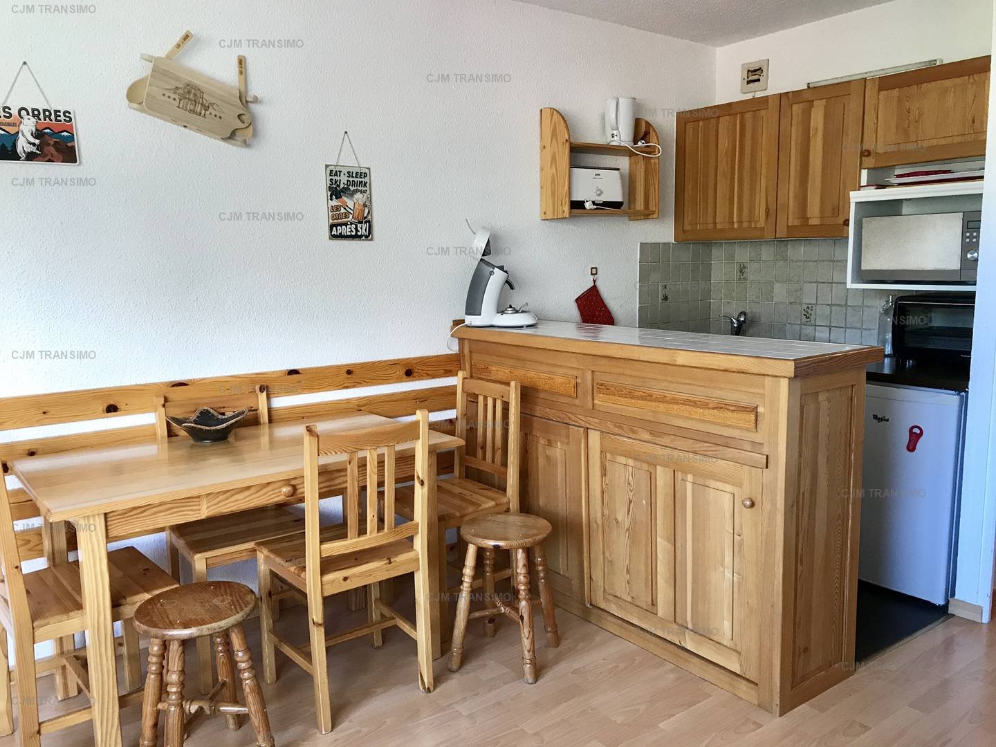Studio équipé pour 6 personnes composé d'une entrée avec 2x 2 lits superposés 1 place d'un séjour avec 1 banquette convertible 2 places, salle de bains et wc séparés, coin cuisine ouvert sur le séjour, balcon exposé sud offrant une très belle vue vallée exposition ouest