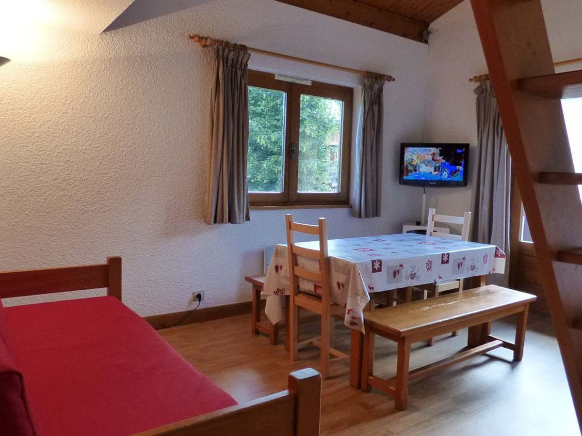 L'appartement, au 1er étage 1/2 avec ascenseur, est composé d'une entrée avec placard, d'une cuisine équipée ouverte sur le séjour avec un canapé lit 1 place + 1 lit tiroir (90 x 190) accès balcon Sud, d'une chambre cabine avec un lit 2 places (140 x 190), d'une salle de douche avec sèche serviettes et d'un wc séparés