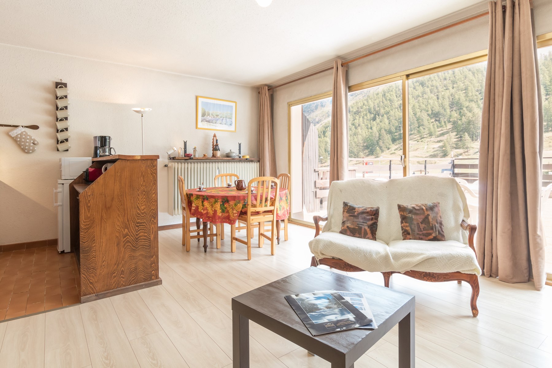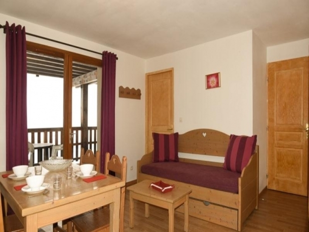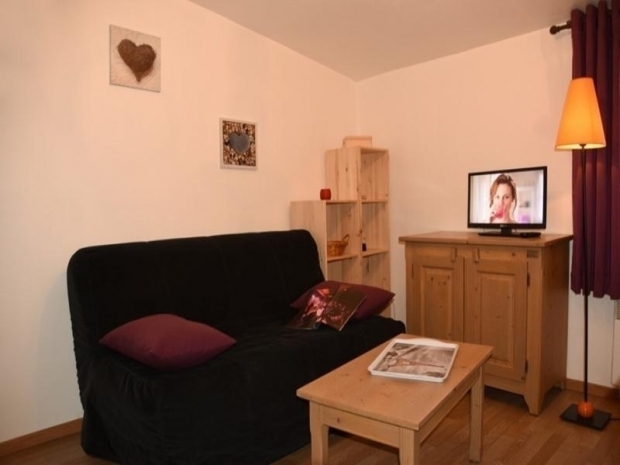 Studio cabine de 26 m² au 1er étage de la résidence. Il est composé d'un séjour avec un canapé convertible, une télévision écran plat, un coin cuisine avec des plaques électriques, un micro-ondes et un frigidaire, une salle d'eau, wc séparé ; le tout donnant sur une grande terrasse de 18m² exposition sud sur laquelle vous pourrez déjeuner et profiter du soleil et de la vue sur la montagne et les pistes de skis.