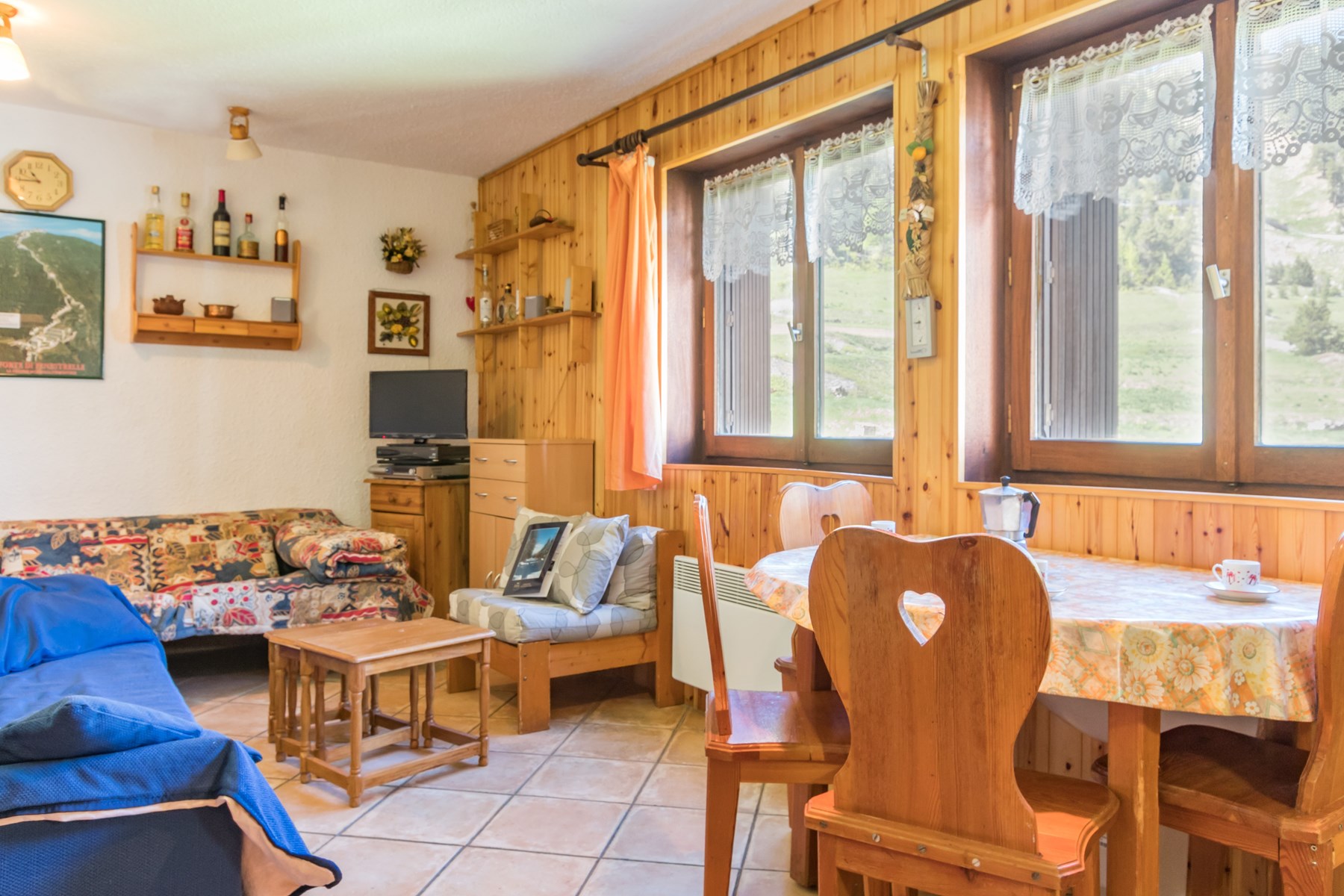 Le studio est composé d'une entrée avec des rangements, un coin cabine avec des lits superposés et un lit simple, une salle d'eau, wc séparé, et d'un salon avec un canapé convertible, une télévision et un balcon exposition sud d'où vous pourrez admirez le panorama de Montgenèvre. Il y a également une kitchenette équipée de 4 plaques électriques, un frigidaire et un four.