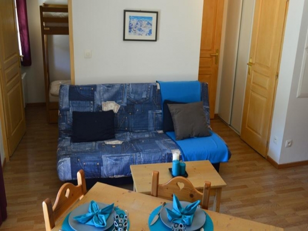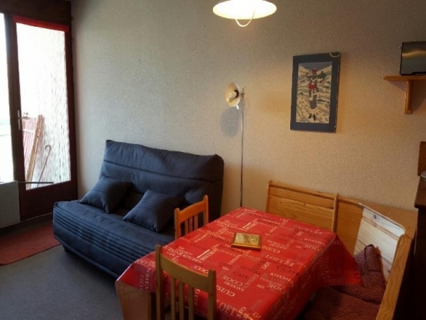 Le logement est composé d'un coin montagne dans l'entrée avec des lits superposés, le tout séparé par une porte du salon. Le séjour est équipé d'un canapé convertible, une télévision et un balcon exposition sud. Vous trouverez un coin cuisine équipé de deux plaques électriques, un micro-ondes et un frigidaire. Il y a une sdb avec douche et bidet et des wc séparés. Il y a un parking réservé à la résidence et un casier à skis.