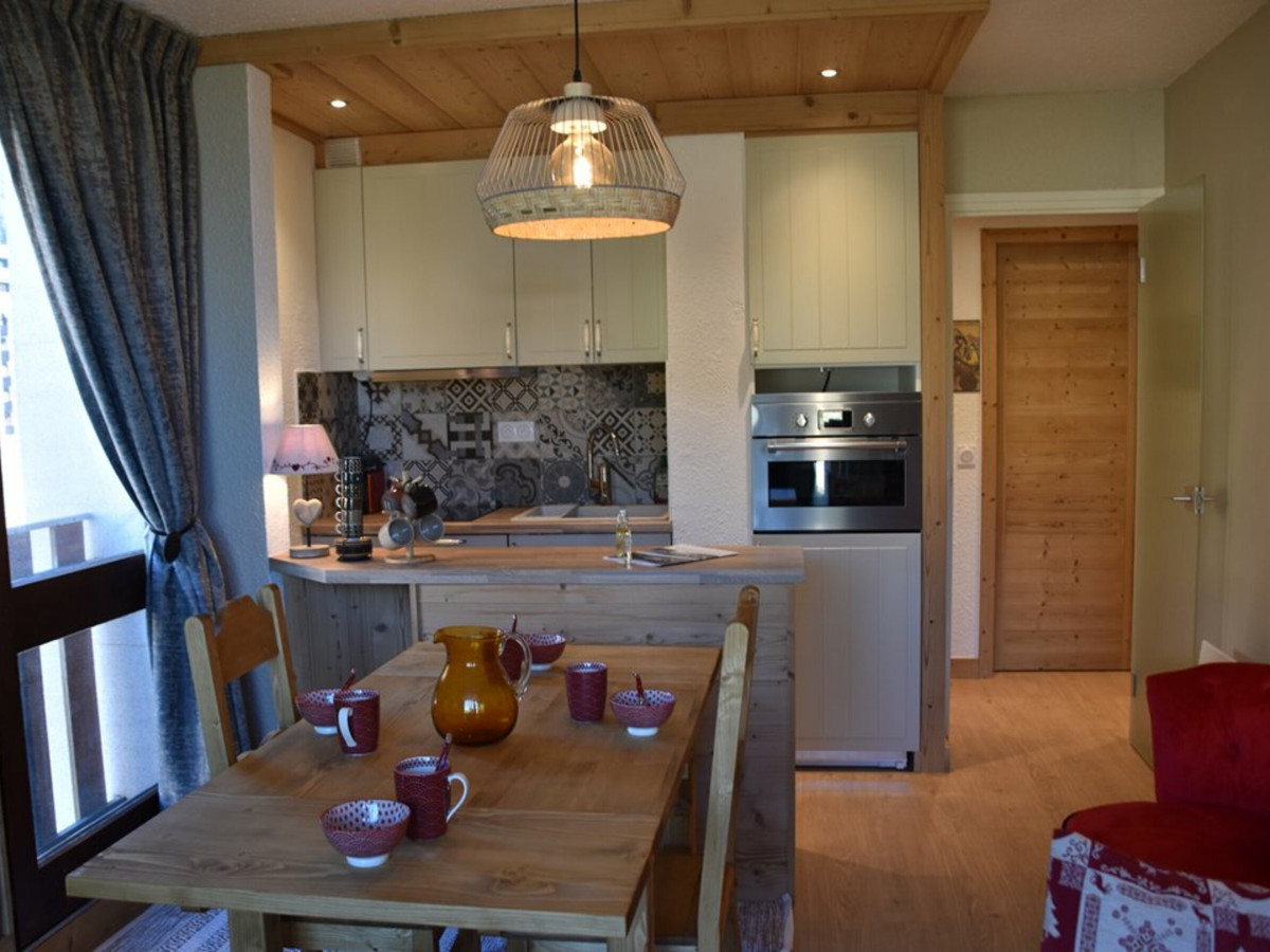 30m2 divisé entre un bel espace séjour donnant sur un balcon exposé Sud avec vue sur les pistes; une entrée avec un lit 2 places en mezzanine, et un lit une personne; et une cuisine tout équipée.