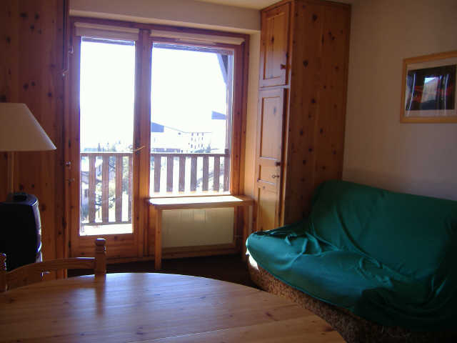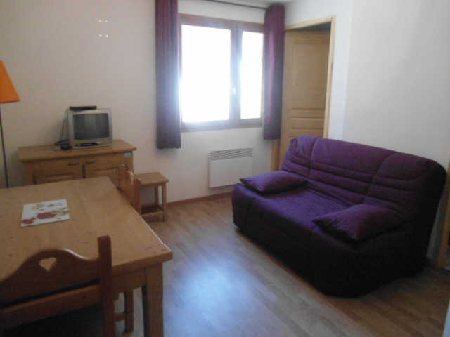 Dans une petite résidence idéalement située aux pieds des pistes de skis et au centre du village, un appartement d'environ 27m² avec grande terrasse exposée plein Sud. Il se compose d'un séjour avec des lits gigognes et une télévision et un coin kitchenette équipé de deux plaques vitrocéramiques, un lave-vaisselle, un frigidaire et un micro-ondes donnant sur une agréable terrasse d'environ 17m² vous laissant profiter d'un panorama sur les belles pistes de la station. Il y a une petite chambre avec des lits superposés, une salle d'eau et des toilettes séparées. Il y a un casier à skis au rdc et du wifi dans le salon de la résidence.