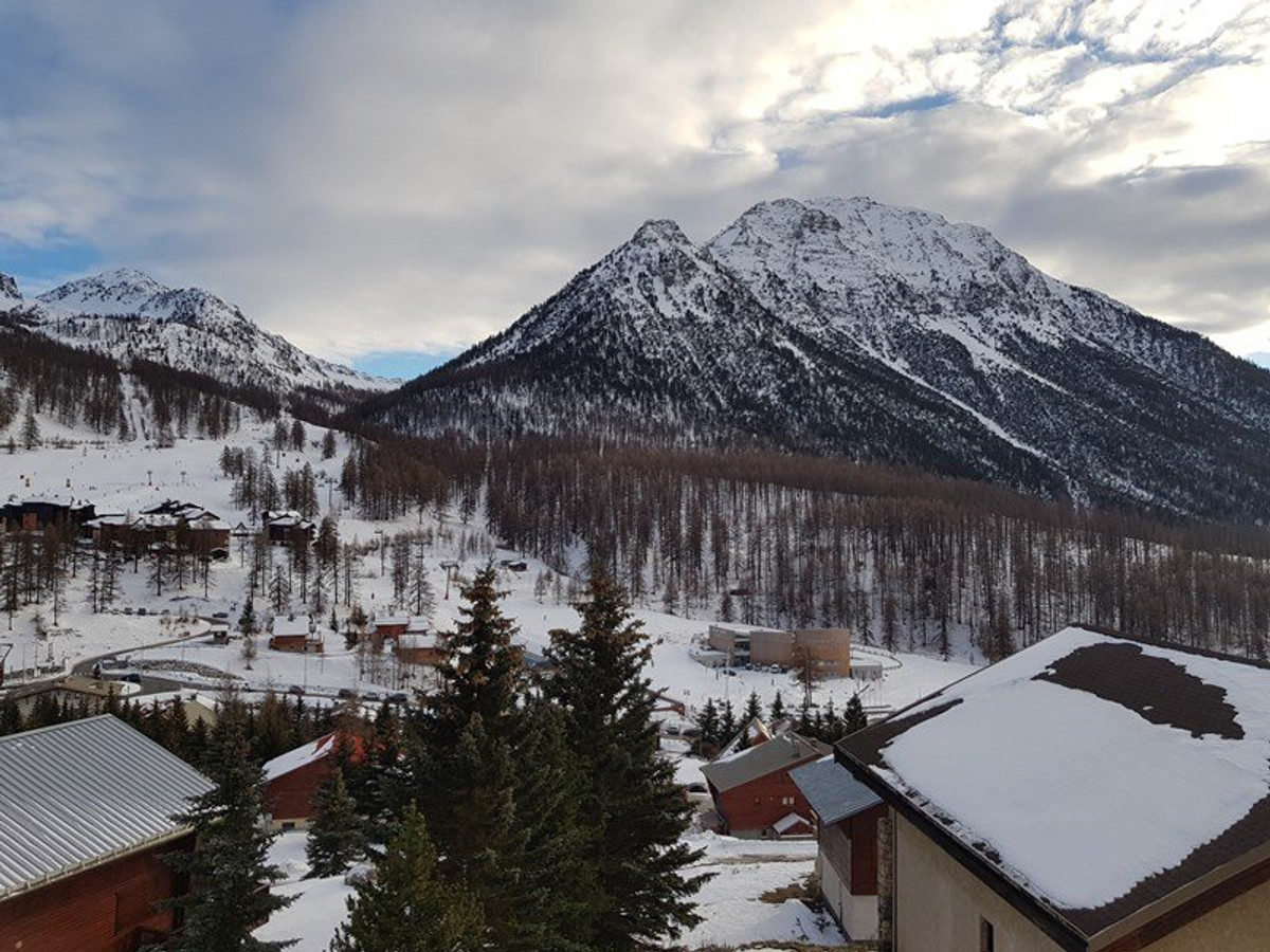 Les avantages de cette location à la montagne : studio avec balcon avec vue sur les sommets.