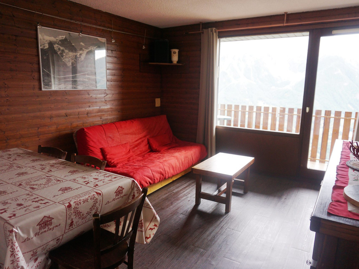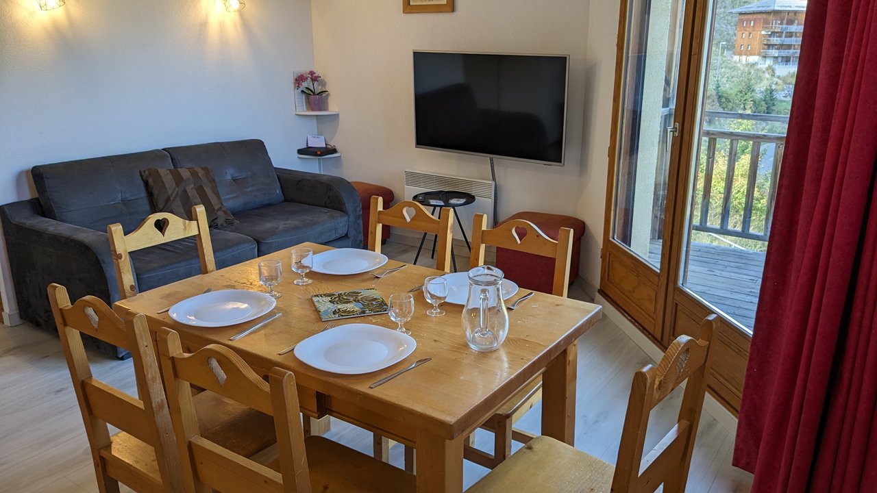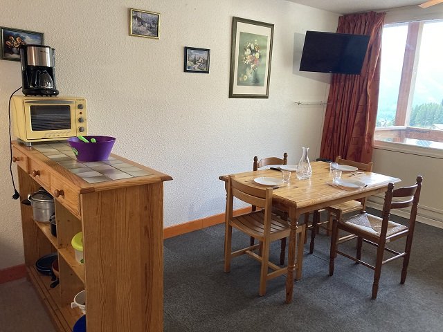 Studio + box 38 m² environ, situé au RDC ; balcon exposition Sud avec vue sur la station et la vallée.