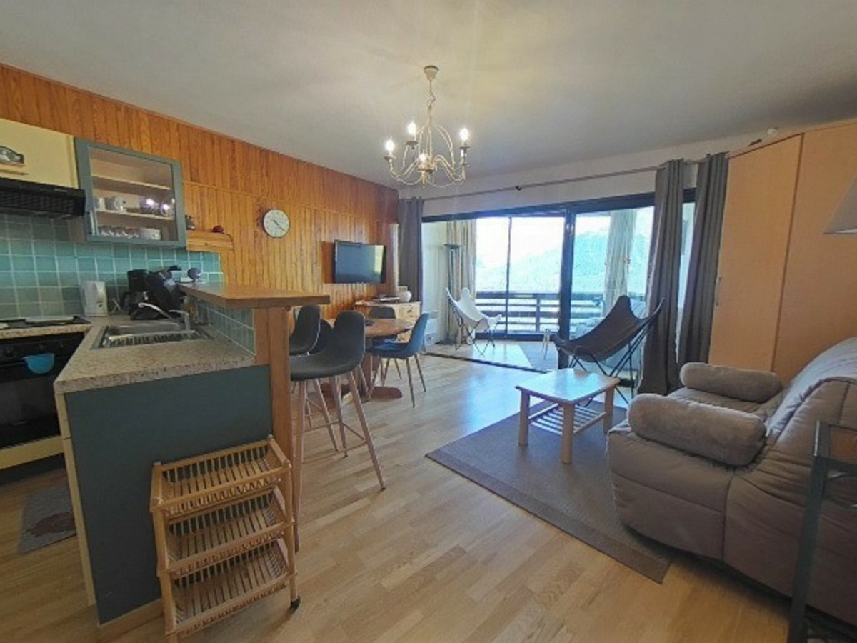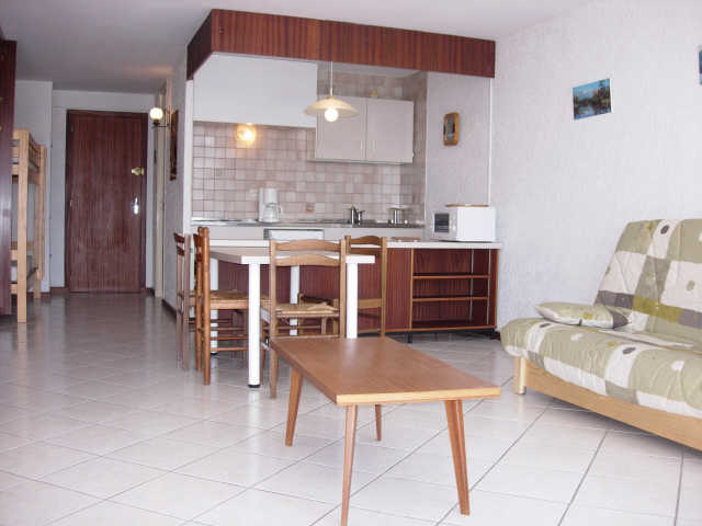 Studio 4 couchages 30m²- centre station -coin-cuisine équipé d'un micro-onde, plaques électriques et réfrigérateur- TV - 1 clic-clac dans le séjour et 2 lits superposés dans l'entrée sans séparation - Salle de bain (baignoire) et WC non séparés - Apt avec carrelage et chauffage au sol collectif.