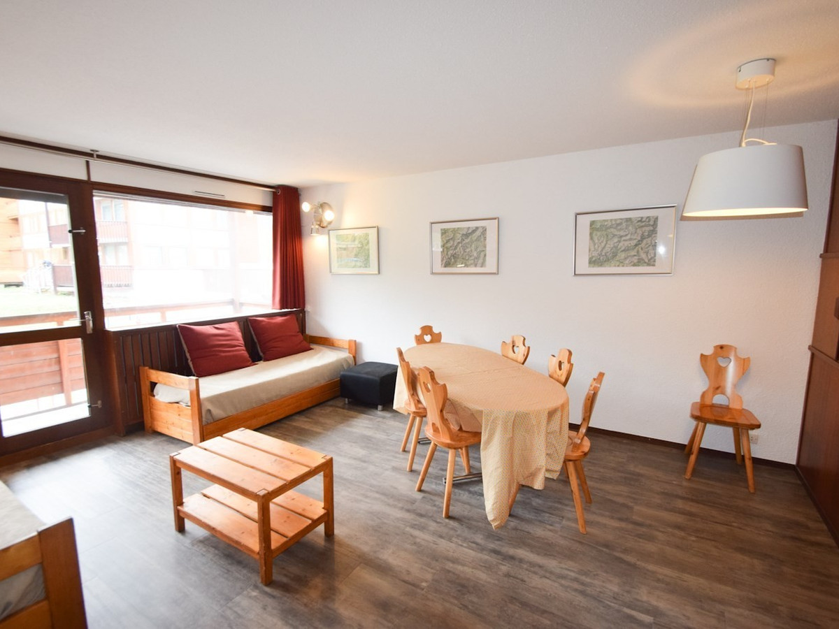 Studio cabine 3/4 pers. 23m2, balcon exposé Sud, vue sur les pistes et la station - 1er étage avec ascenseur - Cuisine dans séjour : cuisinière avec 4 plaques électriques et four et petit lave-vaisselle, réfrigérateur, micro-ondes - Séjour : canapé-lit 2 pers, coin repas, TV - Cabine (avec fenêtre) : 2 lits superposés, TV - Salle de bains : douche - WC inclus. APPT NON-FUMEUR. Literie : couvertures. Ménage de fin de séjour, draps, serviettes et forfaits ski en option.