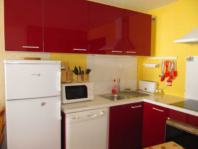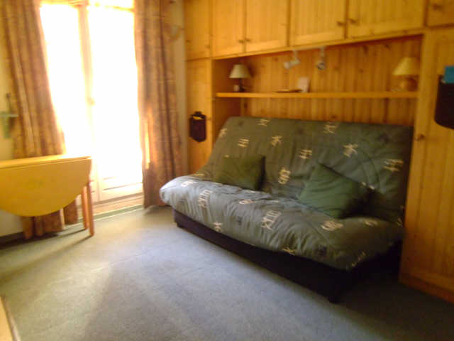 Situé sur le secteur haut de la station, l’appartement s’organise autour d’un séjour avec un clic-clac deux places en 140, d’un coin montagne avec un lit superposé soit 2 couchages simples, d’un coin cuisine équipée, d’une salle de bain avec baignoire, et un WC indépendant. L'appartement dispose aussi d'un casier à ski.