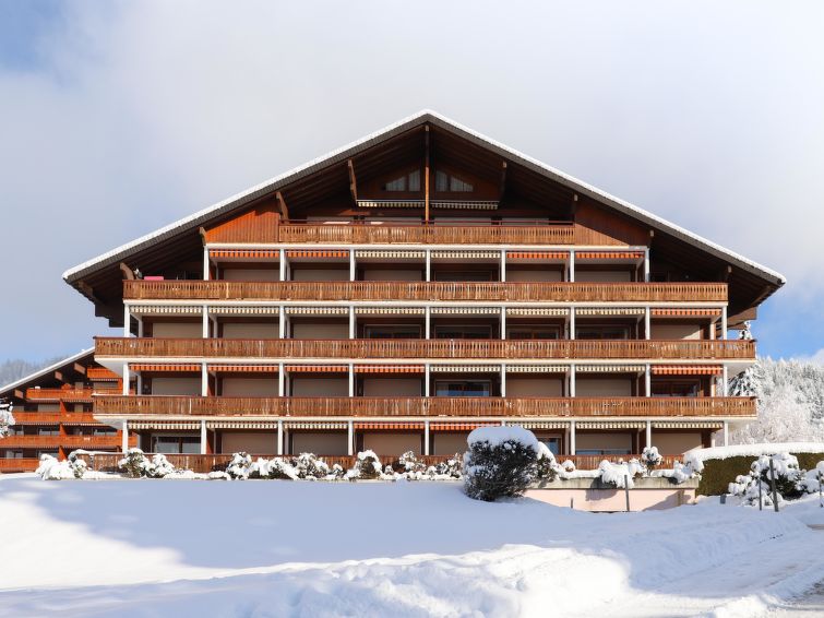 Petite résidence "Grand-Hôtel". Au centre de Villars, à 500 m des pistes de ski, orientée sud. En commun: piscine couverte (14 x 6 m, profondeur 80 - 140 cm, disponibilité saisonnière: 10.Dec. - 01.Nov.). Tennis, ping-pong. Infrastructures de la Maison: sauna, ascenseur, local pour les skis, chauffage central, lave-linge (en sus), sèche-linge. Place de parking. Magasin d'alimentation 100 m, restaurant 200 m, centre à 3 minutes à pieds, arrêt du bus 900 m, gare ferroviaire "Villars" 900 m, piscine couverte 1 km, centre thermal "Lavey-les-bains" 19 km. Port plaisance 25 km, terrain de golf (18 trous) 7 km, tennis couvert 1.4 km, centre sportif 1.4 km, train de montagne 900 m, télécabine 1.6 km. Arrêt du ski-bus 900 m, école de ski 800 m, école de ski d'enfants 1.4 km, patinoire 1 km, jeux pour enfants 1 km. Service de navette gratuite desservant le domaine skiable Villars. Veuillez noter: D’autres appartements sont également proposés à la location dans cette maison de vacances. La pisicine est toujours fermée une semaine après les vacances de Pâques.