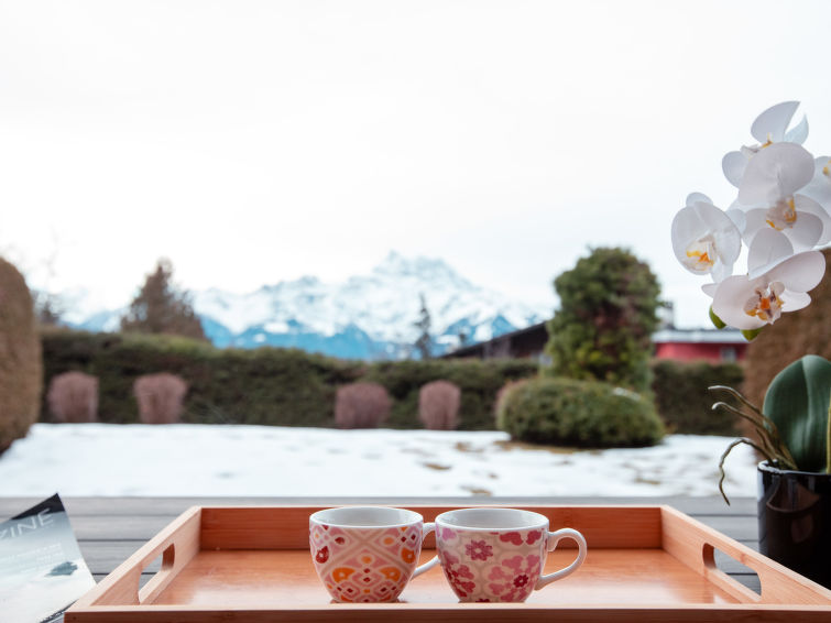 "Les Bruyères A24", appartement sur 2 niveaux 6 pièces 160 m2 au 2ème étage, situation sud-ouest. Spacieux, aménagement confortable et de bon goût: grand séjour/salle à manger avec cheminée, table pour les repas, WC séparés et TV (écran plat). Sortie sur le balcon, orientée sud-est et orientée sud-ouest. 1 grande chambre double avec 1 grand-lit (2 x 90 cm, longueur 200 cm), cheminée, bain/WC, double vasque, bain à remous  et TV (écran plat). Sortie sur le balcon, orientée sud-ouest. Bureau. Sortie sur le balcon, orientée nord-est. Cuisine ouverte (4 plaques de cuisson, four, lave-vaisselle, four micro-ondes, congélateur, cafetière électrique, Capsules pour machine à café (Nespresso) (NON INCLUSES), appareil à raclette, service à fondue (fondue au fromage)) avec bar. Sortie sur le balcon, orientée nord-est. À l'étage supérieur: 1 chambre avec 2 lits (90 cm, longueur 200 cm). 1 chambre, mansardée avec 1 lit (120 cm, longueur 200 cm). 1 chambre avec 2 lits (90 cm, longueur 200 cm), douche/WC et TV (écran plat). Sortie sur le balcon, orientée nord-est. Douche/WC. Grand balcon 40 m2, situation sud-est et situation sud-ouest, 2 balcons 15 m2, situation nord-est et situation sud-est. Mobilier de balcon, barbecue électrique, chaises longues (2). Très belle vue panoramique sur les montagnes. A disposition: lave-linge, sèche-linge, fer à repasser. Internet (Connexion WIFI, gratuit). Garage No 23.