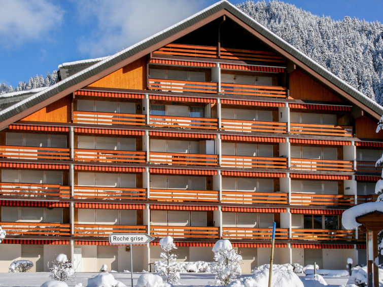 Roches Grises: Résidence "Diamant", de 5 étages. Dans le haut de la station de Villars, situation ensoleillée, à 200 m des pistes de ski, orientée sud. En commun: jardin avec pelouse et plantes. Infrastructures de la Maison: ascenseur, local pour les skis, chauffage central, lave-linge (en commun, en sus), étendoir à linge. En hiver, merci de prévoir des chaînes. Parking public. Magasins 1 km, magasin d'alimentation, restaurant 700 m, boulangerie 900 m, centre à 12 minutes à pieds, arrêt du bus 1 km, gare ferroviaire "Roches Grises" 20 m, piscine couverte 1.6 km, centre thermal "Lavey-es-Bains" 19 km. Port plaisance 25 km, terrain de golf (18 trous) 7 km, tennis couvert, centre sportif 160 m, train de montagne 100 m, télécabine 1.6 km. Arrêt du ski-bus 1 km, école de ski 1.4 km, école de ski d'enfants 160 m, patinoire 1.6 km, jeux pour enfants 1.4 km. Service de navette gratuite desservant le domaine skiable Villars.