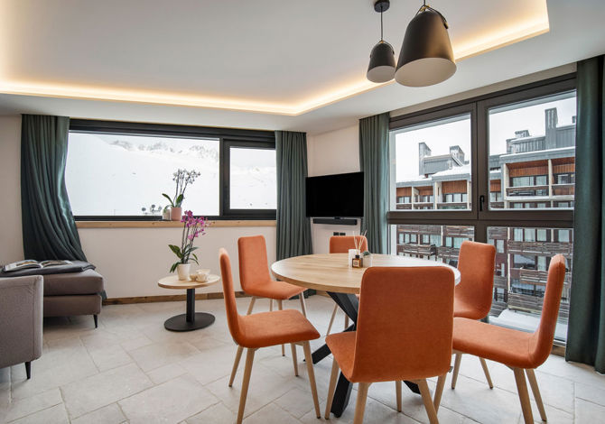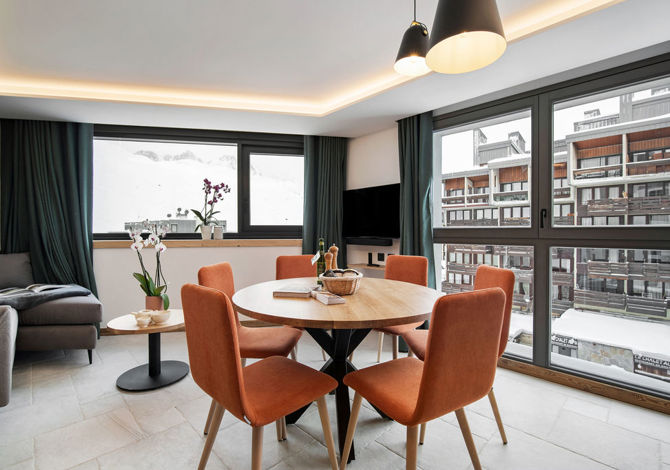 Situation : Au cœur de Tignes Val Claret, à 2100m d'altitude. Commerces et remontées mécaniques facilement accessibles à pied.
