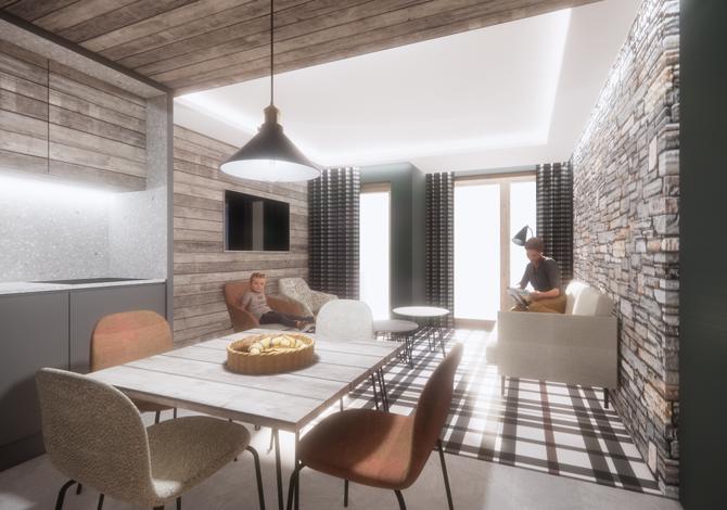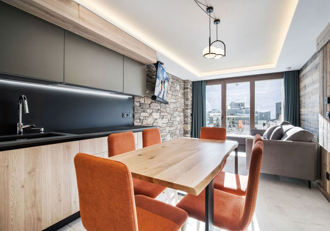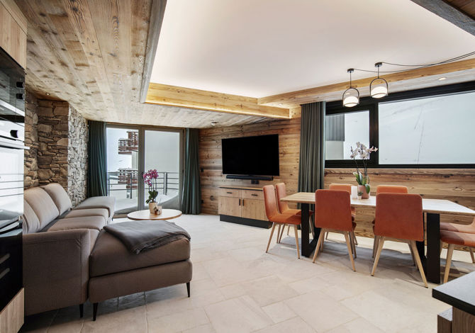 Résidence : Appartements confortables et tout équipés, avec balcon. A disposition sur place : espace bien-être, accès Wifi et casiers à skis XXL.