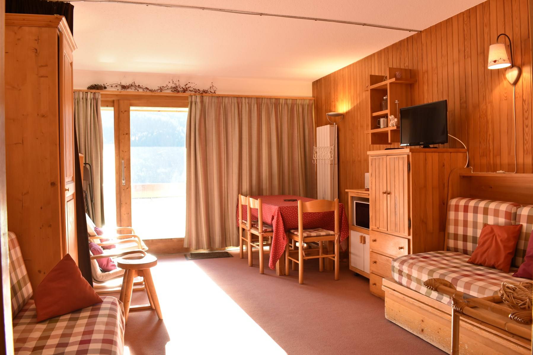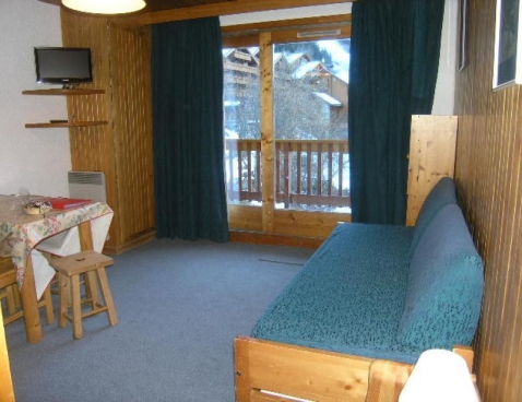 Studio 4 personnes, rez-de-chaussée haut, entrée II, balcon ouest, casier à skis.