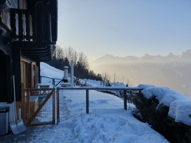 "Chalet Arvine", chalet 5 pièces 200 m2 sur 3 niveaux. Aménagement agréable et de bon goût: entrée. Grand séjour/salle à manger 80 m2 avec baie vitrée avec cheminée, table pour les repas, TV (câblée) et DVD. Sortie sur le balcon, sur la terrasse. Cuisine ouverte (lave-vaisselle, 4 plaques vitrocéramique, congélateur, cafetière électrique, appareil à raclette, service à fondue (fondue au fromage)). WC séparé. À l'étage inférieur: 1 chambre avec 1 grand-lit (1 x 160 cm, longueur 200 cm), bain/WC. 1 chambre avec 2 lits et douche/WC. À l'étage supérieur: 1 grande chambre avec 1 grand-lit (1 x 160 cm, longueur 200 cm), bain/WC et double vasque. 1 grande chambre avec 1 grand-lit (1 x 160 cm, longueur 200 cm), bain/WC et double vasque. Meubles de terrasse, barbecue. Vue panoramique sur les montagnes, la vallée et la localité. A disposition: lave-linge, sèche-linge. Internet (Connexion WIFI, gratuit). Place de parking (3 voitures). Veuillez noter: logement pour non fumeurs. 1 place de parking dans le garage télénendaz à disposition durant l'hiver 2016-2017. Inclus: Garantie satisfaction gratuite, Internet sans fil (WIFI) Disponible sur le site avec supplément: Lit bébé (jusqu'à 2 ans) 4.59EUR par jour, Chaise haute 4.59EUR par jour, Poussette 4.59EUR par jour Services supplémentaires obligatoires sur le site: Taxe de séjour enfants (3-5) (par personne et par jour), Taxe de séjour bébés (0-2) (par personne et par jour), Linge (1er jeu de draps et serviettes) 29.0EUR par personne, Taxe de séjour enfants (6-15) 1.25EUR par personne et par jour, Nettoyage final 49.2EUR par personne, Taxe de séjour 2.5EUR par personne et par jour