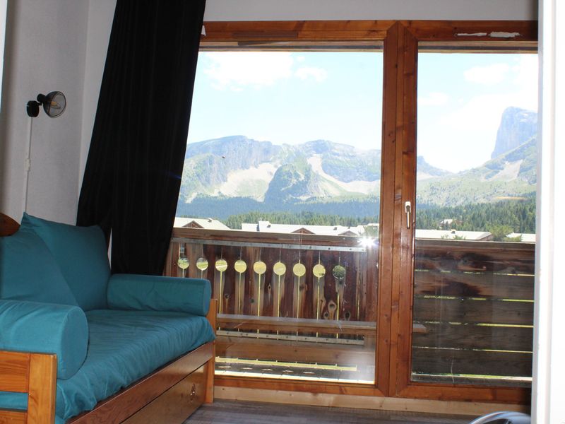 Au sud, très belle vue sur le domaine skiable et le Pic de Bure. Côté vallée, vue sur la montagne de Faraud.