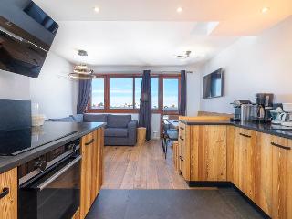 Appartement familial de standing pour 8 personnes, superficie d'environ 97 m² habitable en duplex au 6ème étage de la résidence avec une vue splendide sur la station, et les pistes. 3 balcons. Lits faits à l'arrivée, linge de bain et ménage en milieu de séjour inclus.