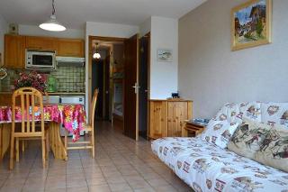 Cet appartement de vacances, au rez de chaussée, comprend un séjour avec canapé convertible 2 places, télévision et coin repas, une kitchenette, une entrée avec deux lits superposés, une salle de bains et un WC indépendant. Les Plus de cette location à la montagne : pistes de ski de fond et patinoire à proximité.