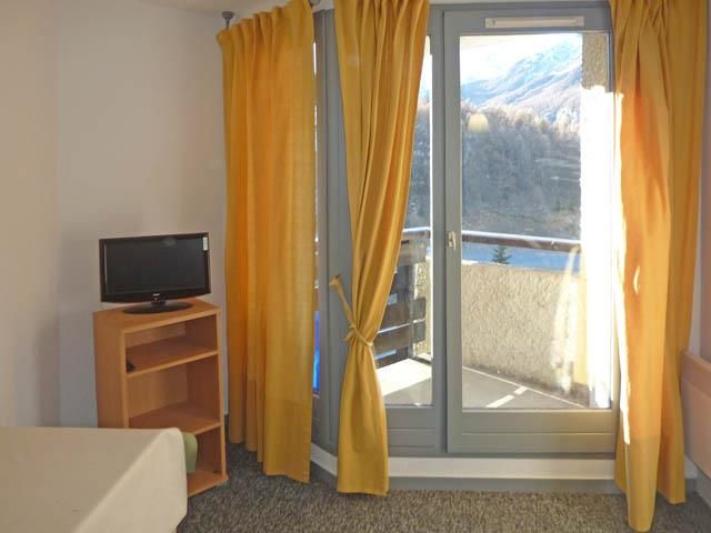 Studio en coeur de station, vue sur la vallée, départ et retour skis aux pieds, accès direct à tous commerces et au animations équipé pour 4 personnes au 8 ème étage de la résidence. Il comprend un coin montagne avec 2 lits superposés 1 place, un séjour avec une banquette convertible 2 places, une salle de bain et wc indépendants, ainsi qu'un coin cuisine ouvert sur le séjour, Balcon exposition Ouest très belle vue sur la vallée.