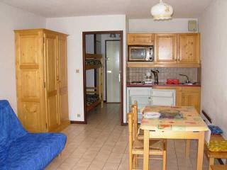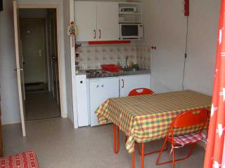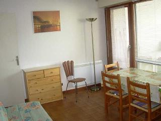 STUDIO 25 m² situé au 1er étage de la résidence "LES CYCLAMENS" - ascenseur - avec grand balcon OUEST comprenant : - une entrée avec placard, - salle de bains/WC, - un séjour avec un canapé-lit 2 per., deux lits superposés , - une petite cuisine indépendante. Equipement : FOUR, TV.