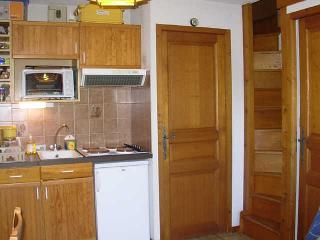 A SAMOENS VILLAGE - centre - studio 1er étage, balcon OUEST comprenant : entrée avec superposés, salle de bains/WC, séjour avec kitchenette, canapé-clic-clac EQUIPEMENT : mini-four,TV