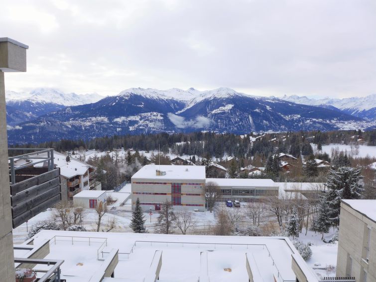 Immeuble "Diadème", de 9 étages. Dans le quartier d'Aminona, en bordure de la localité, à 6 km du centre de Montana, dans une impasse. En commun: jardin propice à la détente. Espace barbecue, espace de jeux pour les enfants (toboggan, balançoire). Infrastructures de la Maison: local pour les skis, chauffage central, lave-linge, sèche-linge (en commun, en sus). Accès en voiture (route de montagne). Place de parking (nombre de places limité) près de la maison, parking public couvert à 400 m. Magasins 6 km, restaurant 6 km, arrêt de bus "Aminona" 200 m. Remontées mécaniques 3.5 km. Patinoire 6 km. Région de randonnées: Colombire et Plumachit. Veuillez noter: voiture recommandée. Ski-bus gratuit.
