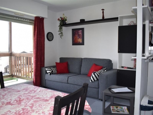 Joli studio cabine face aux pistes qui comprend : Un coin cabine dans l'entrée avec un lit double en 140 fait sur mesure, un salle d'eau avec cabine douche et wc; un séjour/kitchennette avec lave-vaisselle et coin salon avec TV/Lecteur DVD et canapé clic-clac convertible en lit 140. Balcon avec vue panoramique sur les pistes. EN COURS DE RENOVATION AVANT HIVER 2020/2021.