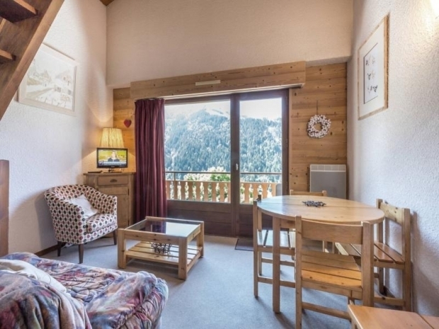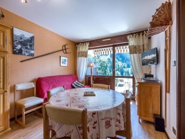 - SEJOUR (16.12 m²) : coin repas, 1 CANAPE-LIT RAPIDO (140), CHEMINEE, TV écran plat, baie + porte-fenêtre, balcon sud, vue résidences voisines / route de la Piscine / montagne