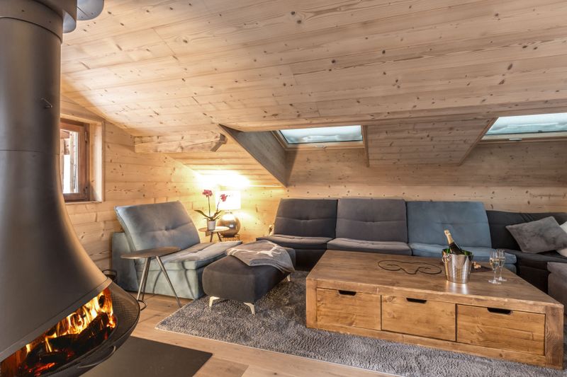 Appartement de caractère, situé au 2ème étage d'un chalet typique au coeur du village, sur la place de l'Eglise. A 200 m des télécabines de BEAUREGARD / PATINOIRE, du télésiège du CRET DU MERLE, à 150 du Champ Giguet (départ cours de ski) et de la base de loisirs en été, à proximité immédiate des commerces et garderies. Arrêt de navettes à 150 m.