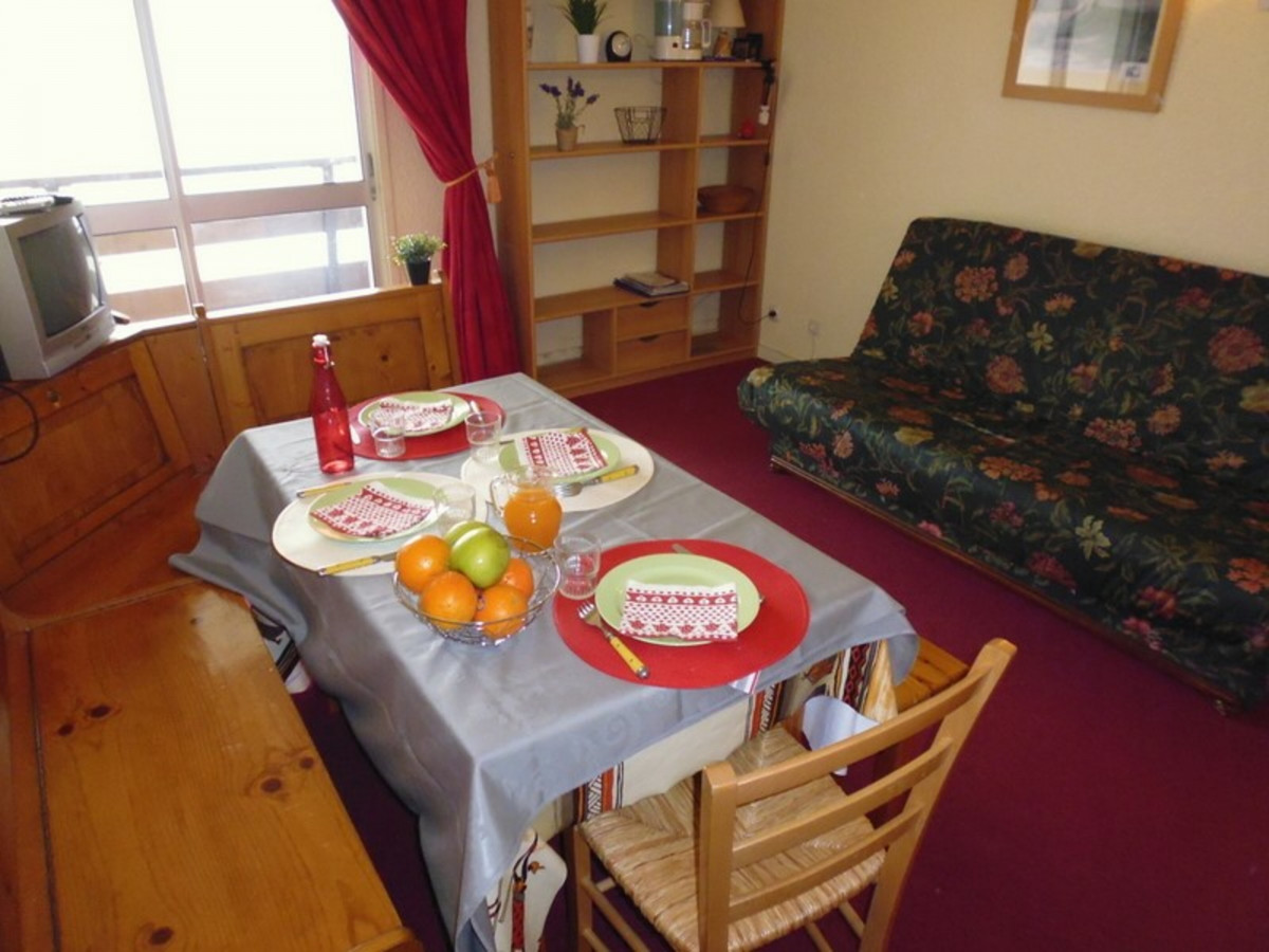 Studio situé au 8ème étage, surface de 22 m² avec balcon, exposition sud, face aux pistes. Séjour équipé d?un téléviseur, d?un canapé lit 2 places et de lits superposés. PVC au sol.