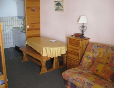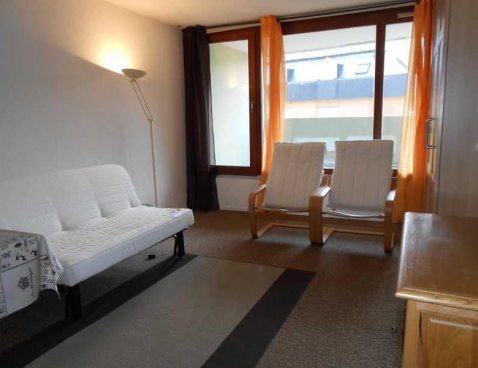 Studio situé au 3ème étage, surface de 26 m² avec balcon, exposition sud, face aux pistes. Séjour équipé d?une TV, d?un canapé lit 2 places. Cabine avec deux lits superposés dans l?entrée. Sol en PVC.