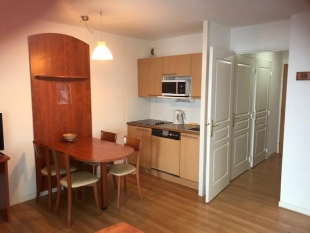 Studette située au 4ème étage (accès par escalier et ascenseur) 15 m² en exposition Sud avec balcon, comprenant un séjour avec canapé lit et un lit en hauteur en 90, téléviseur, une salle de douche avec toilettes. Kitchenette équipée micro ondes, 2 plaques induction, combi four micro ondes, lave vaisselle, cafetière électrique, réfrigérateur. Parquet au sol.