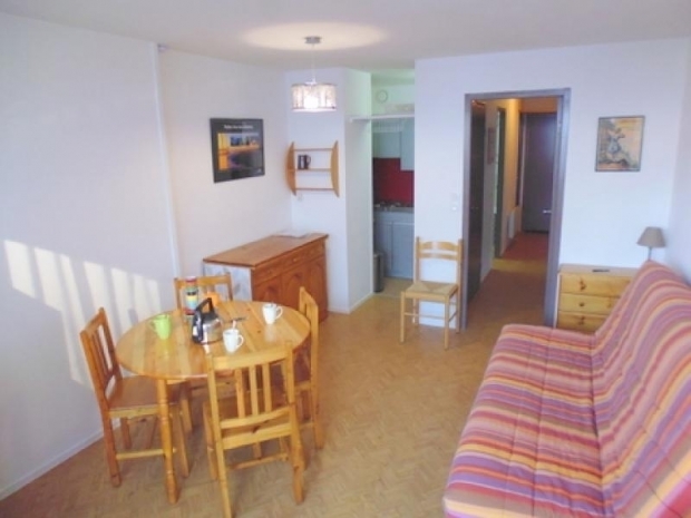 studio cabine 4 personnes avec parking couvert dans la 1ère résidence de la station 22 m² en 2ème étage. Il se compose d'une entrée équipée de 2 lits superposés en 80, séjour avec canapé lit, coin cu . . .