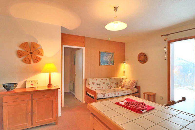 Studio coin montagne de 26 m², 4 personnes, avec à l'entrée 2 lits superposés, un séjour avec 1 canapé(2 lits 1 pers tirroir), télévision, Radio CD, coin cuisine avec 2 plaques électriques, lave-vaisselle, micro-ondes/ four, une salle de bain avec baignoire, et wc séparés.