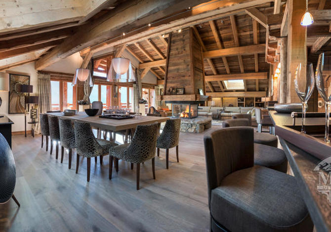 Elle comporte 5 suites dotées chacune de sa propre salle de bains ou douche, un salon en charpente apparente, une cheminée centrale à foyer ouvert et une cuisine moderne, séparée de l'espace repas par un bar. Luxe, raffinement et confort sont les maîtres mots de ce cocon : profitez du hammam, de la salle de sport, de la salle de jeux et du home cinéma.