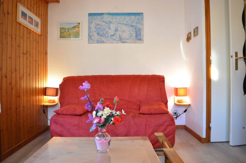 Cet appartement de vacances situé au 1er étage comprend un séjour avec un convertible 2 personnes avec télévision, une cabine avec 1 lit 2 personnes, un coin cuisine équipé et une salle d'eau avec WC, un balcon sud avec vue sur le domaine skiable et sur la Colombière, un casier à ski et parking couvert sous la résidence.