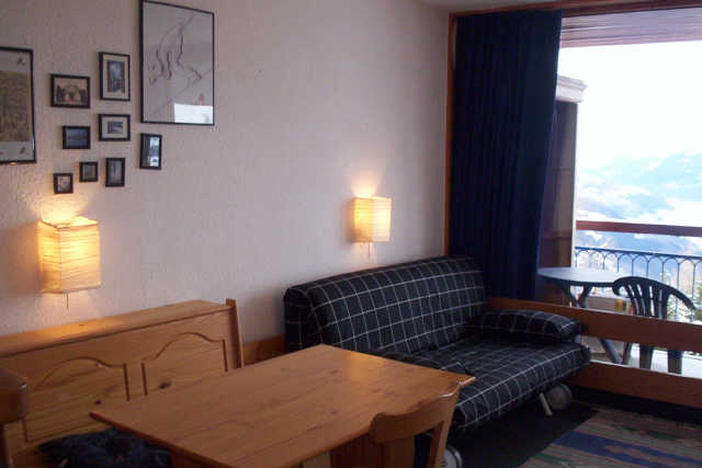 Agréable studio pour 4 personnes en dernier étage avec une très belle vue panoramique sur la station et les pistes.