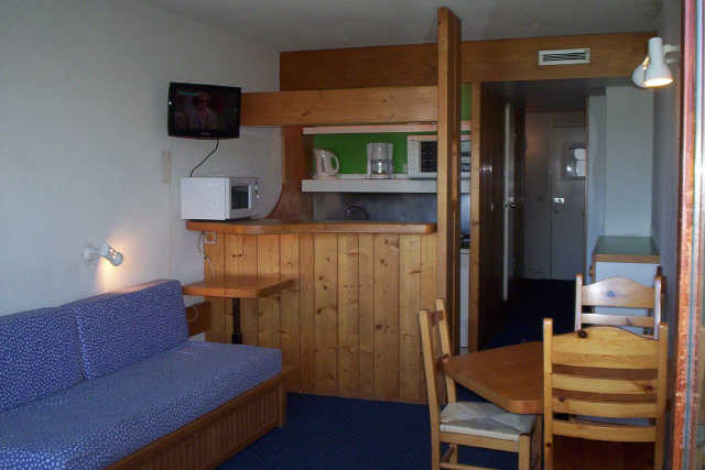 Studette 2 personnes 13 m2 sans balcon dans une résidence au coeur de la station. Attention impossible de mettre une TV dans le studio.