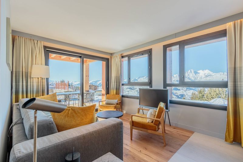 ARCS 1800 - Résidence premium 4* : L’Ecrin. Ambiance Contemporaine et Bois pour ce superbe appartement de 4 pièces, 80 m2, spacieux, moderne et lumineux, pour 8 personnes offrant une magnifique vue sur la vallée de la Tarentaise. Exposition Ouest. Résidence très récente et de standing avec prestations hôtelières, avec son espace détente : sauna, hammam et salle de fitness.
