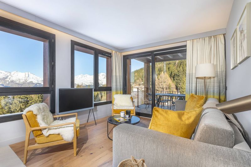 Appartement NEUF 4 personnes, 64 m² avec 2 chambres et 1 grande terrasse orientée Est avec vue dégagée sur le Mont-Blanc et la forêt de Gollet. Décoration chic et contemporaine !