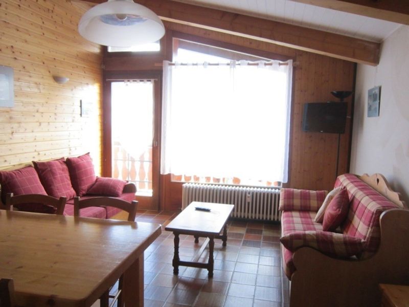 Description : - Hall d'Entrée - Coin cuisine ouvert avec un bar de séparation équipé (4 plaques et mini-four électrique, réfrigérateur, hotte aspirante, placards de rangement avec batterie de cuisine, micro-ondes) - Séjour salle à manger équipé d' 1 clic clac 2 personnes (140), d'1 banquette 1 pers (90) et 1 lit tiroir 1 pers (90) et d'1 TV - baie vitrée avec accès sur le balcon, Vue panoramique sur le village et l'arrivée des pistes, orienté SUD/EST - Salle de bains (baignoire, lavabo, WC) - box a skis au rdc - chauffage centrale - animaux non acceptés. Non fumeurs.
