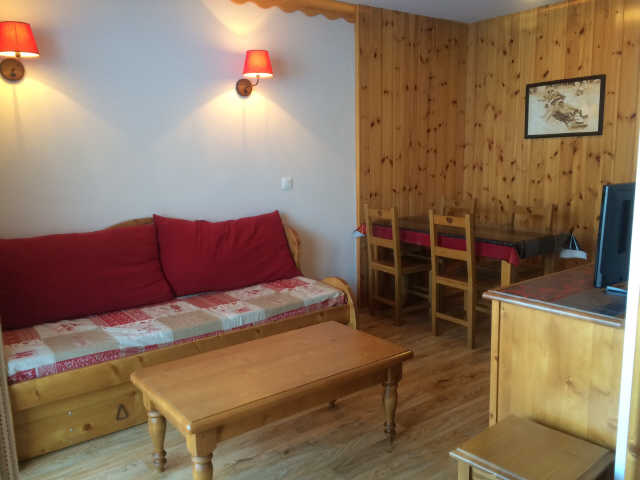 Dans la résidence le Boussolenc, au dessus de la galerie commerciale, départ skis aux pieds. Coquet studio aménagé pour 4 personnes situé en centre station, comprenant une entrée, un séjour avec 1 banquette convertible clic-clac 2 places, un coin cabine avec 2 lits superposés 1 place, une salle de bain avec wc, un coin cuisine, Balcon offrant une très belle vue sur les pistes exposition Sud en sixième étage.