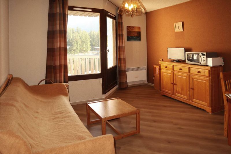 Résidence skis aux pieds L'Oustal sur le centre station 1650 - Studio coin nuit équipé 5 couchages, Exposé SUD avec balcon vue Forêt - Box à skis - Possibilité de parking en option. Ménage de fin de séjour et linge de maison non compris. Lits superposés déconseillés aux enfants de -6 ans. Animaux non admis.