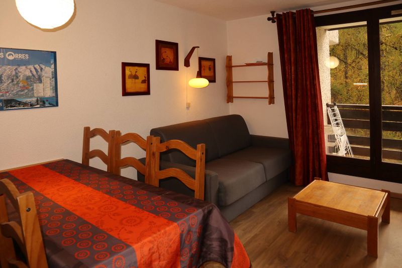 Joli Studio équipé pour 6 personnes situé dans la Résidence Le Cairn en étage bas, en plein centre station avec accès direct aux pistes, comprenant : 1 coin montagne avec 2 lits superposés 1 place, 2ème coin montagne avec une banquette convertible 2 places, un séjour avec une banquette convertible 2 places, un coin cuisine équipé ouvert sur le séjour, une salle de bain et Toilettes séparées, Linoléum au sol. Balcon exposition Ouest offrant une belle vue sur la vallée.