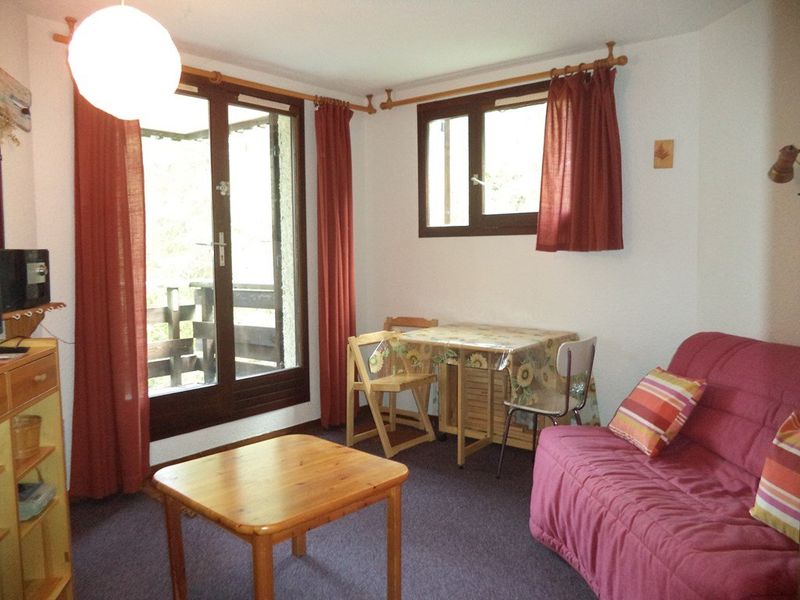 Studio équipé pour 4 personnes composé d'une entrée avec 2 lits superposés 1 place d'un séjour avec 1 banquette convertible 2 places, salle de bains et wc séparés, coin cuisine ouvert sur le séjour, balcon exposé sud offrant une très belle vue pistes.
