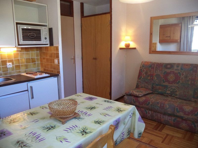 Idéalement situé en coeur de station des Orres 1650 coquet studio 4 personnes qui se compose d'un salon/séjour avec 1 canapé Clic-Clac 2 places, d'un coin cuisine aménagé, d'un coin nuit à l'entrée avec 2 lits superposés une personne, une salle d'eau avec douche et wc.