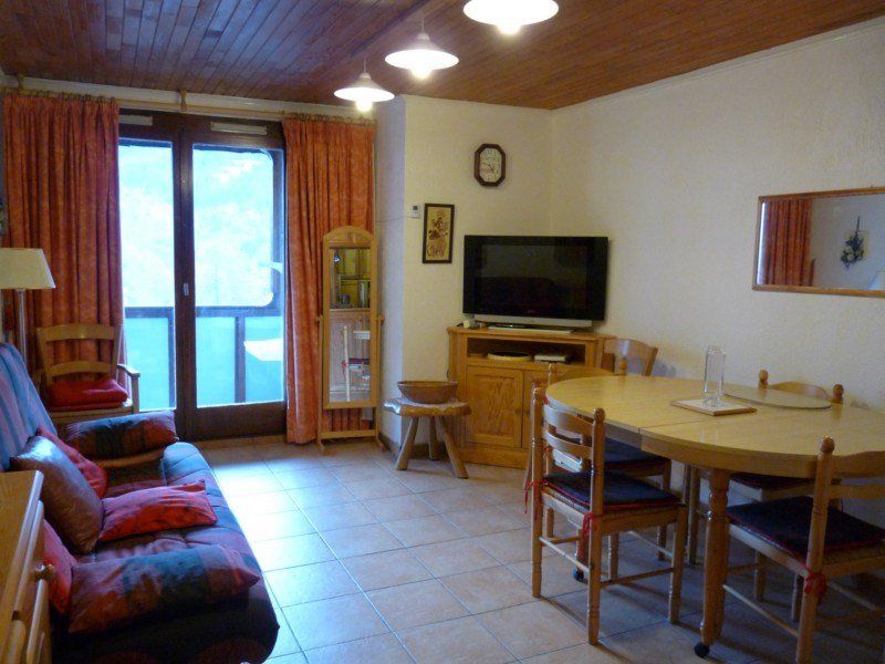 Appartement équipé pour 6 personnes composé d'une entrée avec 2 lits superposés 1 place d'un séjour avec 1 banquette convertible 2 places, 1 chambre 1 lit 2 places, salle de bains et wc séparés, coin cuisine ouvert sur le séjour, balcon exposé Ouest avec vue sur la patinoire et vallée.
