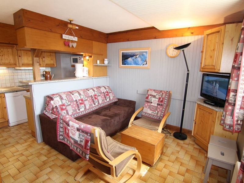Studio cabine de 25 m2 situé au 1er étage de la résidence, orienté Est avec petit balcon et vue sur le massif du Beaufortain.