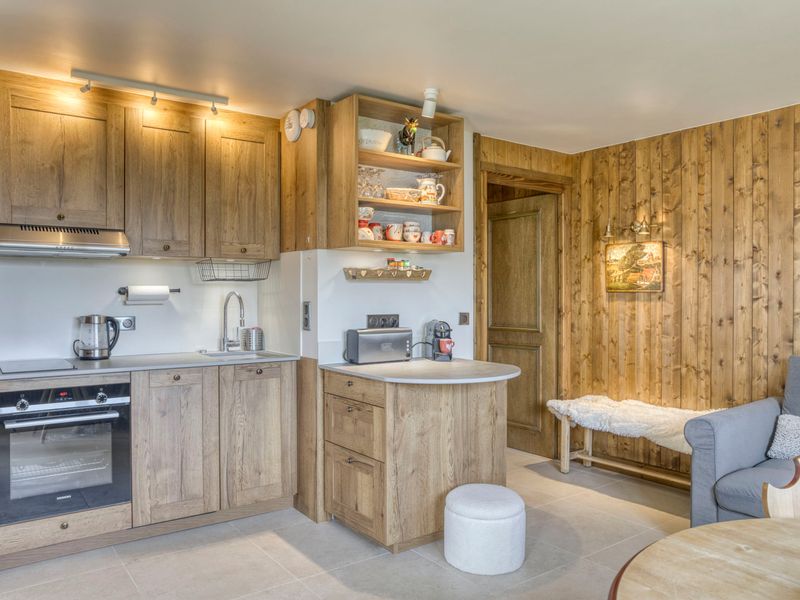 - cuisine ouverte avec 2 plaques induction, lave-vaisselle 8 couverts, four multifonctions micro-ondes, réfrigérateur avec freezer, et une table haute