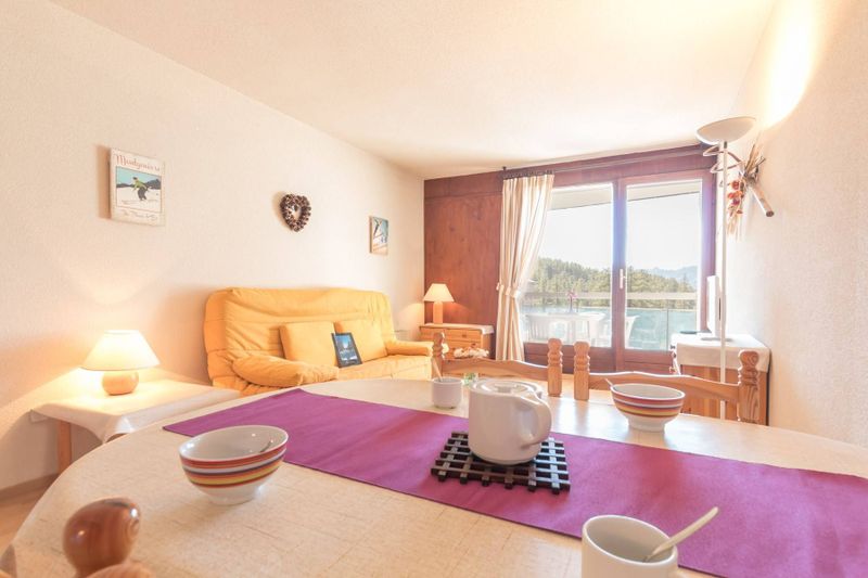 Le studio dispose d'un balcon exposé sud avec vue sur les pistes.